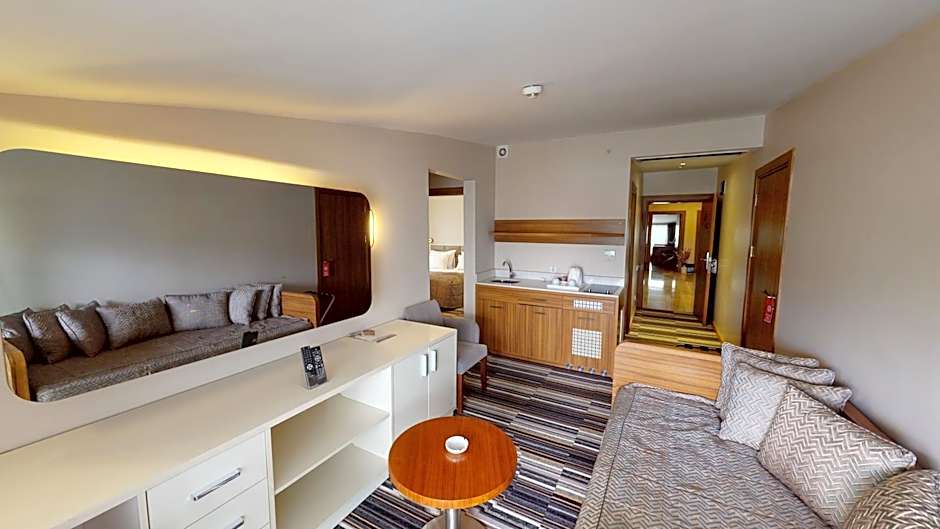 This spacious suite has 2 separate bedrooms with a modern décor. It includes air conditioning, satellite TV and a kitchenette with a stove, electric kettle and a mini-bar.